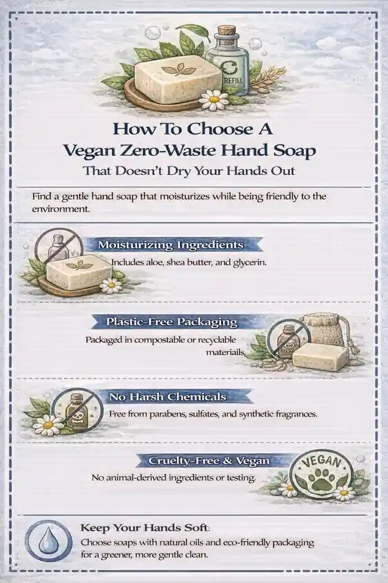 Vegan zero-waste hand soap is plain soap made without animal-derived ingredients and designed to eliminate single-use plastic through refills, tablets, or bar formats. In real-world use, the best options are fragrance-free, minimally formulated, and fast-rinsing, because they clean effectively without drying or irritating skin—making them easier to use every day and genuinely sustainable.