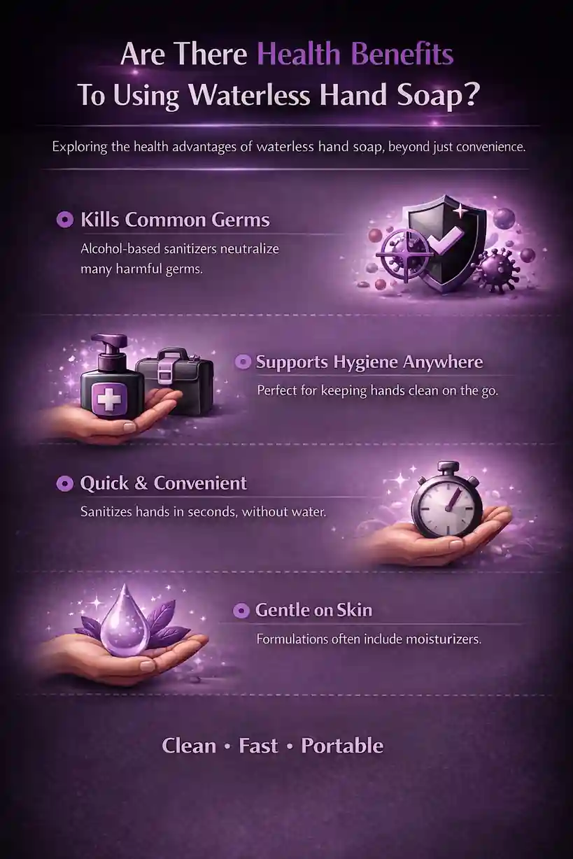 Waterless hand soap isn’t just about convenience—it can offer real health benefits when used strategically. Backed by professional kitchen experience and modern formulation science, it plays a valuable role in reducing germs, protecting skin health, and supporting safer hygiene practices when water isn’t immediately available.